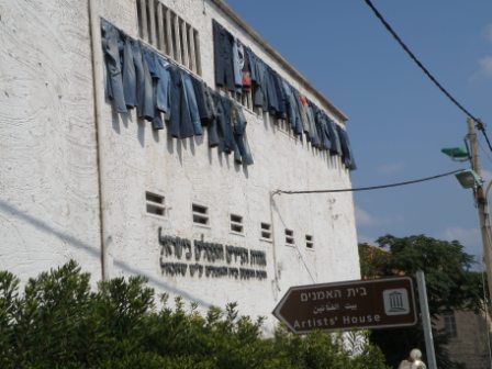 אורה חיים הציבה בחזית בית האמנים ע"ש שאגאל בחיפה מיצב הבנוי מעשרות פריטי לבוש העשויים מבד בג'ינס . המיצב מהווה מצד אחד התכתבות עם אירועי ציון 100