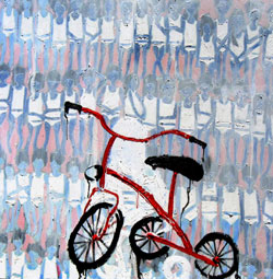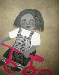 שרון רשב"ם פרופ, בת קיבוץ גבעת חיים, מציירת את ילדותה בקבוץ ובוחנת את מורכבותו של חלום החינוך בחברה האידאליסטית. בציוריה, דיוקנאות ילדים, רובם נוגים, בקווי רישום עדינים ומדוקדקים. באחרים, במשיכות מכחול בוטות, בכתמי צבע עזים, צלליות ילדים חסרי פנים וזיהוי לובשים גופיה ותחתוני כותנה אחידים ונזיריים, שותפים בזוג האופניים היחיד או בשמלה הנכספת, האחת והיחידה ממחסן הבגדים, שאותה חלקו כל הבנות.