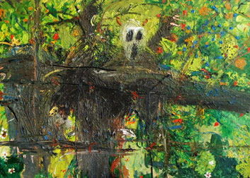 העבודות בתערוכה הנוכחית רוויות התרחשויות פנטסטיות ויצורים דמוניים בתוך סבך ציורי כאוטי. הן עשויות במחוות דחוסות ואגרסיביות המשמרות פראיות של עולם קמאי.
