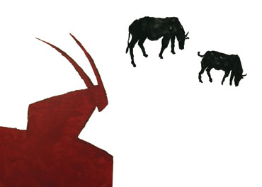 מתוך השאלות האלו נוצרה התערוכה הנוכחית. האיל או הראם - הסמליות הארצית והמקומית המוטבעת בדמותו הדו ממדית וחיבורו לאדמה ולצרכי הקיום – יכול לשמש ולהוות נקודת מבט ובוחן משותפת לתערוכתם החדשה של האמנים אבי שק ויונתן אופק. מקומיות מול אוניברסאליות, עבר מול הווה, קיום פיזי מול זיכרון מטאפיזי, קדושה מול חולין, כל אלה מתקיימים בדיונם היצירתי המשותף של האמנים.
