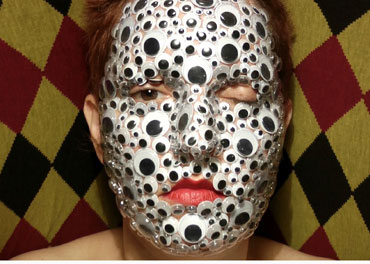 התערוכה מתמקדת במדיומים שונים: בצילום, בווידיאו, ברישום דיו על נייר, בפיסול בנייר ובמגזרות נייר, כשהצבעוניות מוגבלת בעיקר לשחור לבן ואדום. בכל אלה משכפלת קריסטל את דמותה ובכך ממשיכה את פעולתה מתערוכות קודמות, בהן עסקה בדיוקן עצמי: ברישום בדיו על נייר  היא משכפלת את פניה בריבוי צפוף ויוצרת בכך תחושה של המון קהל הממלא את המרחב. בחלל הגלריה נוכחת דמותה כאקרובטית וכפאקיר , "אישה אקורדיון" המנפחת שרירים , אסיסטנטית של זורק סכינים מופיעה במבצע מרהיב של החדרת חרבות לשדיה, דוב ונציג למשפחת הזוחלים, אשת קעקועים . וכמובן גם פריק-שואו. הדמויות חושפות שרירים, מגלות ארוטיות, גדולות מעצמן. כזו היא "האישה אקורדיון", השרירנית העשויה ממגזרת נייר, אשר נפתחת מ- 173 ס"מ ל-240 ס"מ, מלווה בהתמתחויות ובחיתוך המאיימים לקרוע אותה. ה זוחל הוא עבודת וידאו שבה מופיעות פניה של האמנית, עליהן מודבקות בצפיפות עיניים כמו שריון. האמנית מרעידה את פניה שמתוכן בולטות עיניה האמיתיות, אותן היא עוצמת מרוב פחד. היצור בעל המון העיניים תלוי למעשה בקהל – הוא נועץ בו המון עיניים אך בה בעת חושף את עצמו לעיני הקהל, שבהן הוא מתבונן בכל עיניו. השריון שלו, האמור להגן עליו, למעשה מפקיר אותו.