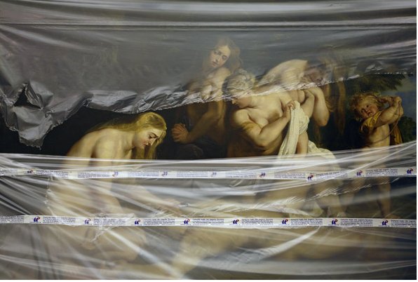 אחד הצילומים מציג את ציורו הנודע של רובנס "מות אדוניס" באור מיוחד. הציור גדל המימדים משרה דרך קבע עוצמה על סביבתו. עירומן של הדמויות אף מגביר את הרושם העז מהסצנה הקלאסית. בצילומו של יובל יאירי הציור עטוף בחלקו בניילון תעשייתי שקוף ופשוט, שנועד להגן עליו מהעבודה בסביבתו . בעטיפה חלקית זו נראית היצירה העוצמתית פגיעה, דהויה, מעורטלת וחסרת נוכחות. כיסוי תעשייתי שקוף וחלקי נטל מיצירת המופת את איכויותיה ואת נוכחותה. תיעודו של יובל יאירי מנציח נקודות מבט אלה ואחרות המתייחסות במישרין ובעקיפין ליצירות המופת ולממשק שלהן עם סביבת עבודת השיפוץ. ממשק זמני וחולף .