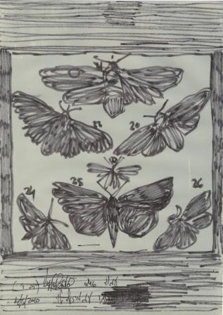 הרישומים המופיעים על גבי הטקסט, מזכירים במידה רבה נפש מעונה בגוף של ילדה, שהאלטרנטיבה היחידה שלה לשרוד בעולם של כאב, הוא לתעד באסוציאטיביות את מיידיות ההפרעה הנפשית, ולא לחכות לזמנים טובים יותר. אופן הפעולה של היוצרת הוא בכוונה תחילה מצומצם בחומריותו: 270 דפי 4A תלויים בצורה צפופה והרמטית וממלאים חלל באורך 15 מטר אורך. דווקא דפי הנייר הפשוטים האלה, יותר מהכול גרמו לחשוב על החיפושיות ההרסניות הללו, שהעבירו וירוסים וכילו עצים שלמים עד האחרון שבהם. האם אנו בני האדם לא עושים את אותו הפשע כשאנו יוצרים את הנייר. אינך חושב על עץ כשאתה מביט בבד הקנבס המתוח, אבל הדפים האלה, כול הזמן גרמו לי לחשוב שסופה של האמנות התרפויטית הוא לכלות אפילו את עצמה. תחושת האבלות שלפתה אותי גרמה לי להרהר על קץ הדברים. כשיצאתי מהתערוכה התיישבתי על גרם המדרגות ודפדפתי בחוברת "טבלאות שבתאי" בה היא מקדישה כל עמוד מספרו של זבאלד לאדם אחר בחייה (ביקשתי רשות מהאוצרת יעל קיני לקחת אחת והיא הסכימה). רציתי לדעת, למי ענת מיכאליס-לוי מקדישה את תחלואת עצי הלבנון בידי החיפושיות, אותם עצים שלבסוף נכחדו בשל הופעת ההוריקן בחופי אנגליה בשנת 1987, (למענכם העתקתי מילה במילה):
