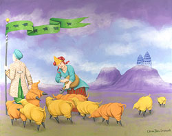 הציורים האלה יאפשרו לכם הצצה אל תוך מרחב האפשרויות האינסופי הנמצא במקביל אלינו. עולם הרוחש פעילות, טקסים, תהליכים ומערכות יחסים אוהבות בין דמויות השונות מאיתנו באופן התנהלותן, אבל כל כך מזכירות לנו איך שאנו נראים מבפנים."
