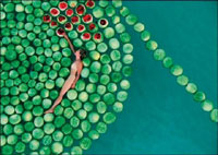 ממנוף גבוה, ובה נראה גופה של האמנית שט במעגל אבטיחים הצף בים המלח. כמה מהאבטיחים בקועים, והבשרניות האדומה שלהם מאזכרת סטיגמטות השטות בים של שלווה רוחנית. עוד עולה שם המתח בין מתיקות הפרי למליחות הים. העבודה הזאת מתכתבת עם עבודת האדמה המפורסמת "Spiral Jetty" של האמן האמריקאי רוברט סמיתסון משנת 1970. באחד התיעודים הידועים של עבודתו של סמיתסון נעשה שימוש במצלמה שהוצבה במסוק, וכך נוצרה תחושה שהמונומנט הסטטי נע.