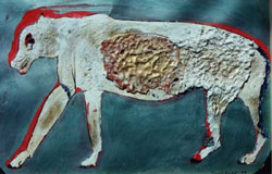 המדיום כמובן מתקשר. ספריי אקריל קל יותר לשימוש בסדרה היהודית שבה אני נמנעת ממגע. לעומתה הסדרה האפריקאית בנויה על ציור פיסולי, על חומרים קונקרטיים, כדי לבטא את רעיון החיבור לטבע. עם זאת מאוד רציתי להביע את הקשר הזורם בין הסדרות. על כן רב העבודות מצוירות על לוחות עץ. הלוחות מעניקות לי תחושה של פשטות וראשוניות. הפסלים מחמר, אף הם, מעבירים תחושה של ראשוניות, העדר קישוטיות או תחכום יתר.