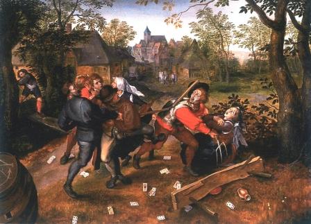 ברויגל האב ופיטר פאול רובנס -איכרים מתקוטטים בגלל קלף משחק |
