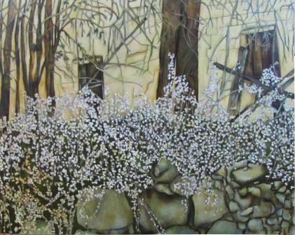 זו פעם ראשונה שאני מגיע לתערוכה אחרי שספגתי בנדיבות את הלך רוחו של הצייר ערב קודם. בשל הזיכרון המתכתי שלי, בכל ציור שאני נעצר מולו קופצים בראשי מילה או משפט שחשף בפני בוסקוביץ. אני עומד ליד הציור "שני עצי ברוש ליד הדרך", ועולות בראשי המילים שאמר לפני שבועיים "יש בי שריד שואתי". רבים מציורי הטבע של בוסקוביץ נעים בין נאיביות לריאליזם טורדני של סוף העולם. כעין היו אלה מראות חינניים משרידי ההרס הניבטים מעיני ילד מוכשר מידי. ילד הנותר לבדו בעולם והוא משקיף, לא כדי לתעד, כדי לספר לעצמו לאן הגיעה הנפש עד כה. הברושים בציוריו של בוסקוביץ הם מנעד רחב של רגשות המתחולל בין הנצחיות לחידלון. קלוז אפ של הקרביים של העלים. עלים כמו תולעים הנוברים בבשר, והכול כמו מסכם את ההיסטוריה של טבע האדם מבראשית ועד ציור קטן ושובה לב ככתם רורשאך אסוציאטיבי "עץ בצל". ציורי הסברס שפירותיו נועזים וחלקם חיוורים כמו לא היו נטועים כלל בארץ הזאת. "הדרך" של בוסקוביץ היא גלות תמידית. נזכר במילים שאמר "אני חי בפחד של רדיפה. אני נמצא במצב של קיצוניות רגשית". בכל הציורים לא תמצא ולו אדם אחד משוטט לו במרחבים. ישנו אזכור אחד בלבד בכל התערוכה למושג הקמאי "בית". ציור בשם "שרידים של בית ישן" בו חומת האבנים והפרחים הלבנים כמו מכסים את חציו של הבית בשלג. אין אפשרות לזהות את הבית מבפנים. אתה מנסה להציץ בסבך העלים והענפים, במין תחושה של געגוע ישן. רוצה להשתחל לתוך הבית ולהכות שורש. החלונות מוגפים בקרשים. זהו בית נטוש, מנוכר, בית שלא שייך לאף אחד. המשך לצעוד, אלו הקולות שאתה שומע, כבעל כורחך יצאת למסע.