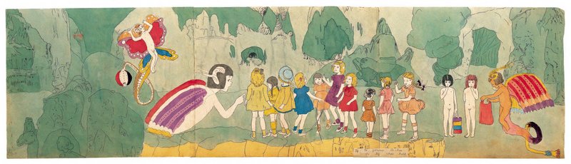 היצירה: דארג'ר ברא מיתולוגיה פרטית, שבמרכזה סיפורן של שבע האחיות לבית ויוויאן, העומדות בפני סכנות חוזרות ונשנות מצד שבעה גברים גלנדליניאנים. גיבורות האפוס של דארג'ר – שצויר בצבעי מים, בעפרונות, או בעטים – מתוארות כילדות חמודות, לעתים לבושות בשמלות ולעתים בעירום, בעלות איברי מין של בנים. בצד תיאורים פסטורליים, מופיעים בציורים תיאורי התעללות אכזריים; מה שנראה במבט ראשון כאיורים לסיפורי אגדות, מתגלה בהדרגה כעולם אפל ומטריד, שמשקף חרדות, דחפים ומאוויים סמויים.