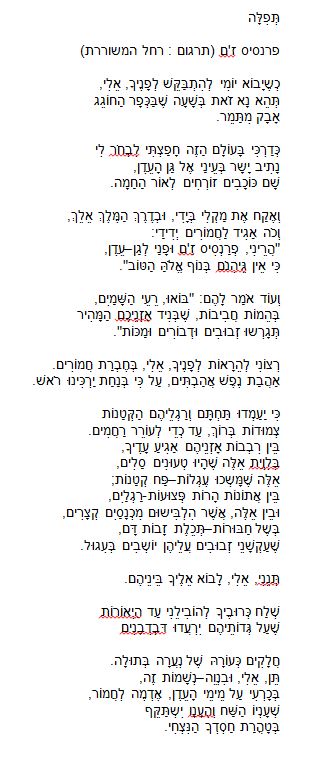 בתרגומה של רחל , מהיפים בתרגומיה. ( השיר מצורף לרשימה, אל תוותרו על קריאתו). דימוי החמור בשירו של פרנסיס ז'אם קשור בעיני מבחינות רבות