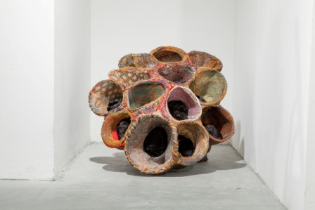 הבחירה של גרוסינגר לעבוד בשנים האחרונות בטקסטיל לאחר שבעבר עבדה בעץ ובנייר, אינה מקרית. הטקסטיל הוא חומר רך, פיסולי, מקורותיו בטבע אך הוא כולו עיבוד אנושי הנושא בתוכו פרקטיקות וידע, זיכרונות, מנהגים וקודים תרבותיים שלמים. הוא מפאר את האדם ומשמש לו כעור שני, הוא מאפשר לו ללבוש ולפשוט זהויות, הוא מכסה ומגן עליו, סופג את זיעתו וחובש את פצעיו. גרוסינגר משתמשת בטקסטילים שונים אותם היא מוצאת – שאריות בגדים ישנים וחוטים שהיא פורמת מבדים – לצד ספוגים, ברזלים וחלקי ריהוט ישנים, ורותמת את איכויותיהם החומריות והמטפוריות על מנת ליצור נרטיב חדש המורכב כולו מחלקי סיפורים הטבועים עמוק בתת המודע הקולקטיבי. הנופים הנראים זרים במרקם ובצבעוניות שלהם מצביעים על כאן ועכשיו, כמו העצים הערומים העשויים חלקי רהיטים ומענפיהם תלויים פירות שהם רוגטקות – גרבי ניילון המשמשים ליופי וחיטוב של הגוף הנשי אך הם נושאים בתוכם אבני קלע. העצים של גרוסינגר מהדהדים פעולות פולחניות של קישרת בדים על עצים, של סימון וסגידה, הכרה והכנעה ומגלמים את האלימות של היום יום הישראלי חודרת לטבע, מש
