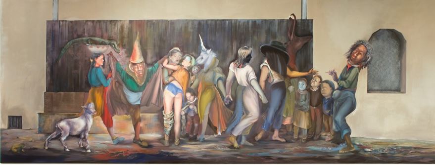 הקרנבל בפריגה, 1992, דיסטמפרה על קנבס, 300 X 800 ס"מ,