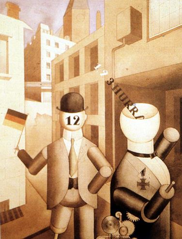 נכה המלחמה שנראה בכל פינת רחוב בברלין, היה אחד מסמליה האובססיביים, של דלות ניסיון זו ותהליכי מיכון, שתואר באמצעותם של האמנים הדאדאיסטים כחצי אדם עלוב, מה שתפסו גאורג גרוס (Grosz 1893- 1959), דיקס שהוזכר לעיל, רודולף שליכטר (Schlichter1890-1955) וחבריהם האחרים לקבוצת הדאדא ואמני רפובליקת וַיימַאר, כגוף אורבני מודרני שמעוצב מחדש בידי הפוליטיקה – חלקו בשר וחלקו מכונה. באָמנותם ערבבו בין גזעים, הכליאו איברים, השתמשו בצורות וצבעים שהראו את המציאות באופן שאיננו שלם, בדיוק מה שנחשב בשנים שבין 1933 ועד 1945, כאמנות מנוונת שפוגעת בטהרת הגזע ומייצגת את הקליני, והפתולוגי ופוגעת ביופי, בהרמוניה, במושלמות וברצף ההומוגני של החיים והמציאות.