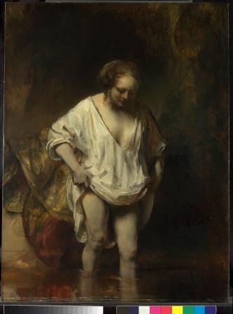 רמברנדט, אישה רוחצת בנחל (הנדריקיה סטופלס?), 1654, שמן על עץ אלון, 61.8 X 47 ס"מ.