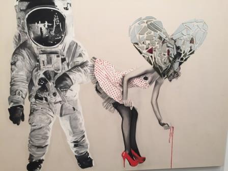 בעבודה אחרת מועמת האסטרונאט עם נערת האמצע שראשה הוא לב ממראה שבורה.