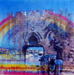 יעקב אגם, אמן קינטי יליד הארץ, החי ויוצר ברחבי העולם כשגריר האמנות הישראלית, יצר את היצירה רבת התנועה "שער האריות וקשת מעל העיר".זהו הדפס משי על פרספקס.
