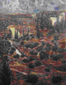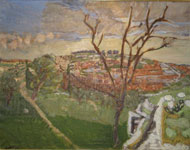 בציור "עין כרם", 1930, שמן על בד, מתואר הכפר הקטן למרגלות ההרים הנישאים, כשבתווך השמיים. הריה הגבוהים של ירושלים, שפסגותיהם יוצאות אל מחוץ למסגרת התמונה, מגמדים את בתי הכפר שלמרגלותיהם - כרוצה להגיד "כחגבים אנו בפני הרי ירושלים הנישאים".