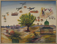 לאה הירושלמית, אמנית היוצרת בסגנון נאיבי, שנולדה בירושלים וכיום חיה עם משפחתה ברמת הגולן. עבודתה המוצגת כאן מתארת את ירושלים של ימי עזרא ונחמיה.