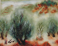 האמנים שהגיעו בתחילת המאה הקודמת לארץ-ישראל מאירופה, נמשכו לירושלים שגירתה את עצביהם האמנותיים. ראובן רובין, שהרבה לצייר את ירושלים וחומותיה, אהב לתאר גם את הריה והנופים של סביבתה.בציורו "הדרך לירושלים –עין כרם", שמן על בד, מצייר ראובן את הכפר הקטן עם עצי הזית כשבתחתית הציור, מצד שמאל, מתוארים רועים ועדר עיזים. ניתן לקרוא בתמונה זו תיאור של עולי רגל הבאים אל העיר הקדושה ומובילים את העיזים, שייתכן ויועלו כקרבן במקדש. האווירה הפסטורלית של נוף עצי הזיתים, מתעתעת, ומדגימה את אהבתו של ראובן לאווירה המיסטית השורה סביב.