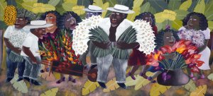 האמנות הנאיבית של ברזיל מעלה דימויים של נופים עשירים, בוהקים בצבעים טרופיים, של יערות גשם שוקקים בחגיגה של החי והצומח, ושל מקצב הבוסה נובה והטקסים הקצביים של הקנדומבלה. אירועי יומיום וחגיגות עונתיות מוצגים בפשטות, באידיאליזציה ובתמימות של ילדים. .jpg)