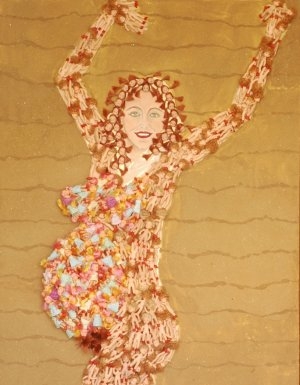 את גופן היא ממלאית בכפתורים זוהרים, או בבובות קטנות, דבר המרמז על נשיותן ותפקידן החברתי וכל זאת בהרבה הומור. הומור הוא מוטיב החוזר בכל עבודותיה.