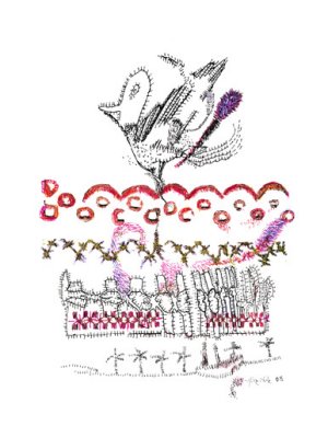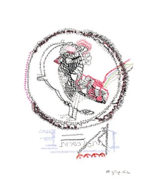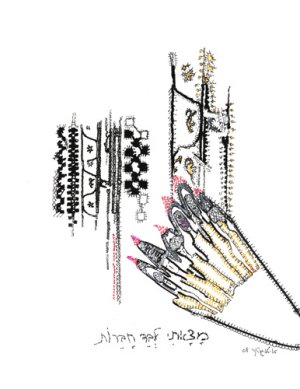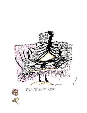 תפרתי לי חוטים דקים לארוג אותך בתוכי. חיצים נקודות מגע רקומים שהמצאתי לי מתפתלים, מתקדמים, הולכים אחורה, מגעים נפרדים מתחברים.