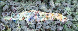 הריצפה מכוסה בין היתר בכותרות עתון "הארץ" מהחדשים האחרונים (ביטוי אותנטי למציאות הישראלית העכורה אותה הוא מבקר).