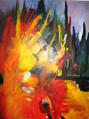 האמנית מובילה אותנו לתוך התמונה, שואבת אותנו לתוך האש, לעבר השביל המתרחק לתוך שטח האויב, לתוך מעמד ההלוויות ואל בתי העלמין. שכבות הצבע הסמיכות והגולמיות, כמו אוטמות את היצירה, ומעבירות לצופה תחושת מצוקה ומחנק בגרון. הצבעוניות העזה והדרמטית כמו זועקת זעקה גדולה ומרה.